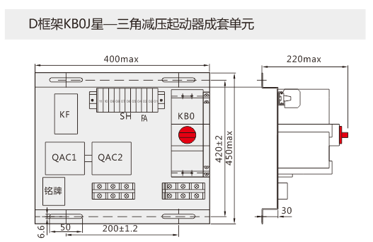 KB0作為主開關,與接觸器、時間繼電器、電氣聯鎖等附件組合,構成Y-△減壓起動器成套單元KB0J(以KB0-F消防型產品作為主開關,可構成消防型Y-△減壓起動器成套單元KB0J-F)可實現110kW及以下的電動機的Y-△減壓起動控制與保護。